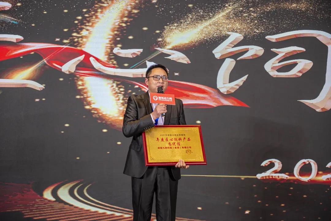 在頒獎(jiǎng)典禮上,集團(tuán)技術(shù)研發(fā)中心總經(jīng)理江書忠榮獲“年度領(lǐng)軍人物”,集團(tuán)教槽料產(chǎn)品“尚優(yōu)佳”榮獲“年度匠心無抗飼料產(chǎn)品獎(jiǎng)”。這是行業(yè)以及社會(huì)各界對(duì)九鼎集團(tuán)研發(fā)實(shí)力以及產(chǎn)品品質(zhì)的高度認(rèn)可及肯定。