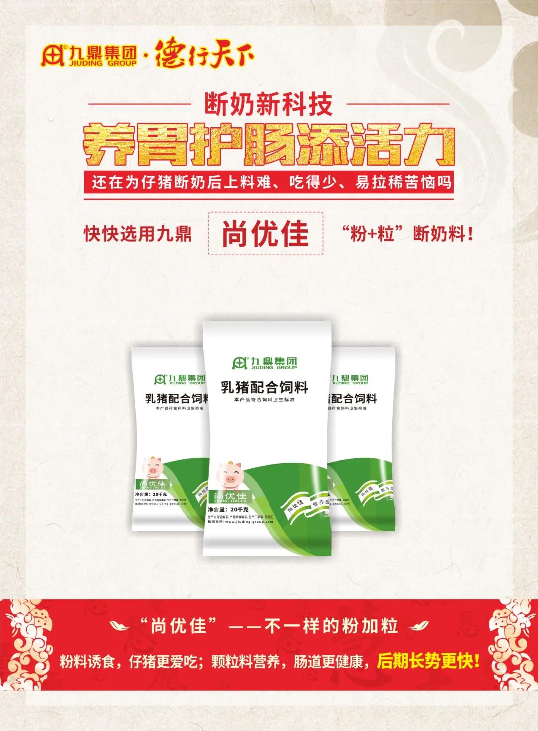 馬總說:九鼎集團(tuán)1997年在行業(yè)內(nèi)率先推出“超早斷奶料”,27年來九鼎集團(tuán)始終圍繞一頭豬專注于精準(zhǔn)營(yíng)養(yǎng),為廣大客戶提供無抗環(huán)保綠色安全的產(chǎn)品和服務(wù),踐行了不忘初心堅(jiān)持匠心產(chǎn)品。教槽料的普及、使用程度的高低代表著養(yǎng)豬水平的高低,期盼同行業(yè)企業(yè)與我們一起推廣好產(chǎn)品,推動(dòng)養(yǎng)豬業(yè)的發(fā)展進(jìn)步。在各個(gè)有識(shí)之士和優(yōu)秀企業(yè)的共同努力中,養(yǎng)豬行業(yè),未來可期。