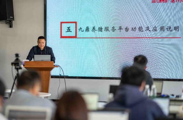 2023年集團(tuán)的亮點(diǎn)之一是建立九鼎養(yǎng)豬服務(wù)平臺。研發(fā)中心江書忠博士為大家講解《九鼎養(yǎng)豬服務(wù)平臺之九鼎母豬生產(chǎn)成績改進(jìn)及提升系統(tǒng)方案》。江博士介紹當(dāng)前背景下,九鼎必須構(gòu)建母豬生產(chǎn)成績改進(jìn)及提升系統(tǒng)方案。江博士分享了九鼎試驗(yàn)基地案例,母豬各環(huán)節(jié)飼養(yǎng)目標(biāo)及常見問題的說明及影響母豬生產(chǎn)成績的因素。最后重點(diǎn)講解九鼎養(yǎng)豬服務(wù)平臺功能及應(yīng)用說明,并在2023年研發(fā)中心重點(diǎn)工作中對九鼎母豬生產(chǎn)成績改進(jìn)及提升系統(tǒng)方案規(guī)劃相關(guān)課程。