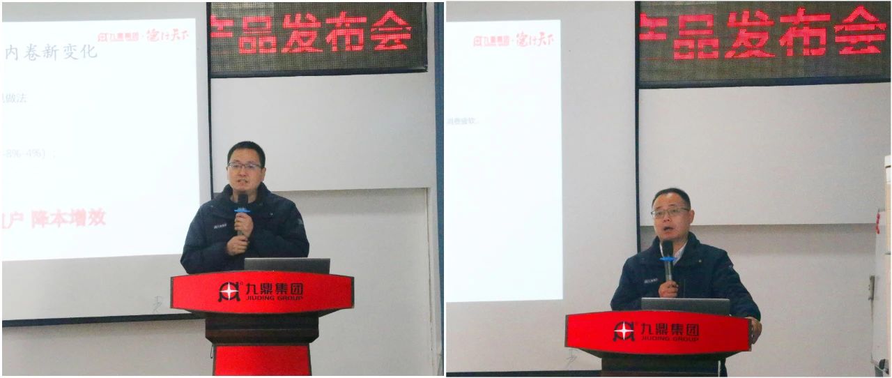 ▲產(chǎn)品經(jīng)理周建磊先生、營(yíng)銷(xiāo)總助孟先偉先生對(duì)新產(chǎn)品進(jìn)行培訓(xùn)講解