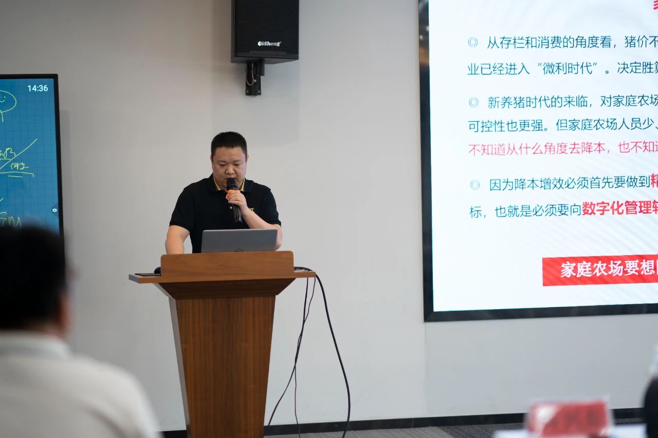 ▲潤農科技總經理劉南林分享了數字化服務促進養(yǎng)殖精益管理案例
