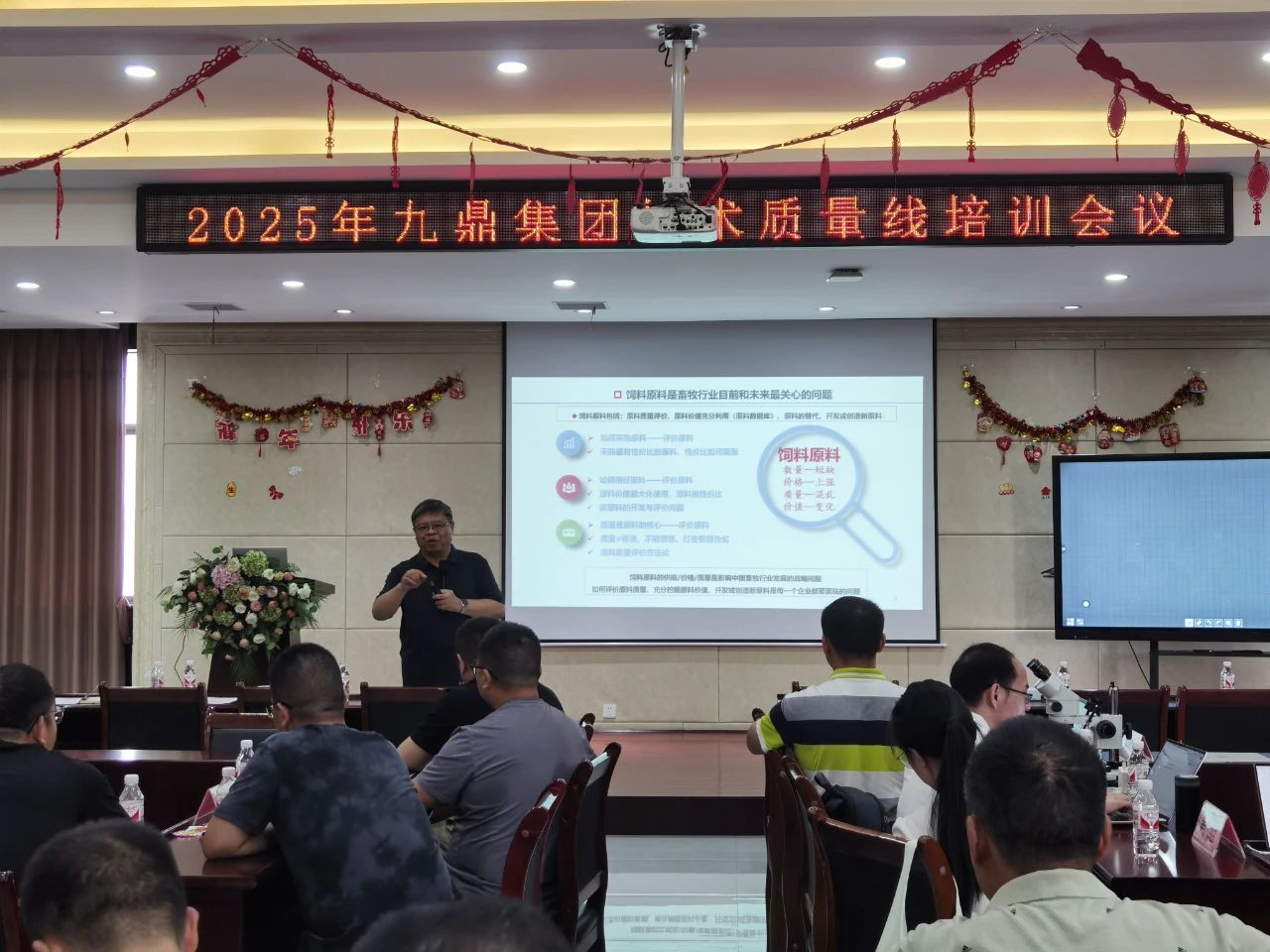 2025年7月22日至23日,九鼎集團(tuán)在岳陽基地湖南農(nóng)牧成功組織召開技術(shù)質(zhì)量線專題培訓(xùn)會(huì)議。本次會(huì)議特邀飼料行業(yè)資深專家、青島蔚藍(lán)生物股份有限公司動(dòng)物營養(yǎng)首席科學(xué)家郭吉原老師及其團(tuán)隊(duì)現(xiàn)場(chǎng)授課指導(dǎo),集團(tuán)技術(shù)、質(zhì)量、采購三線近 80 名骨干人員齊聚一堂,共同參與這場(chǎng)聚焦質(zhì)量管理升級(jí)的專業(yè)培訓(xùn)。